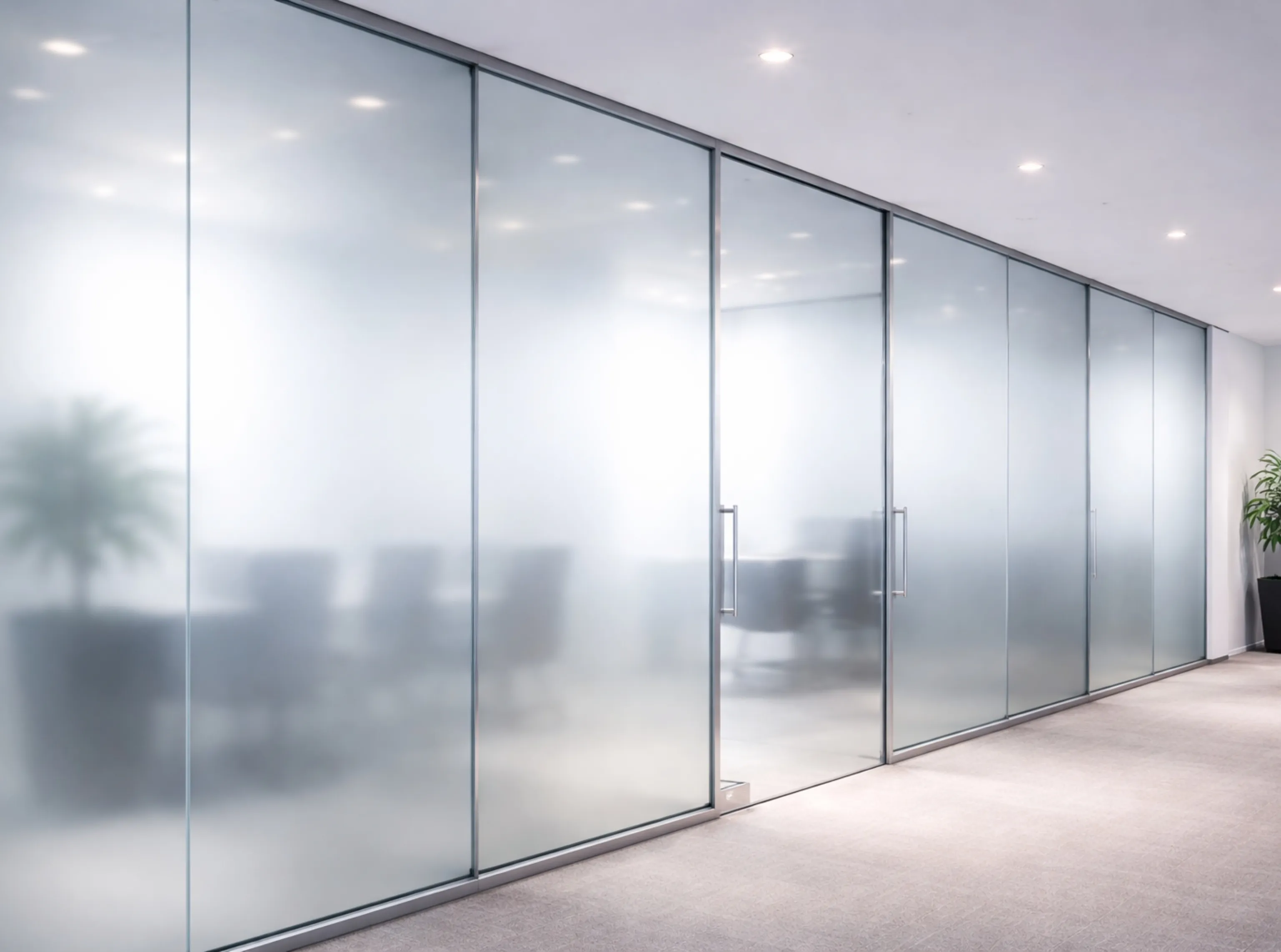 Translucent finished panels provide light diffusion, privacy control, and refined interior aesthetics.