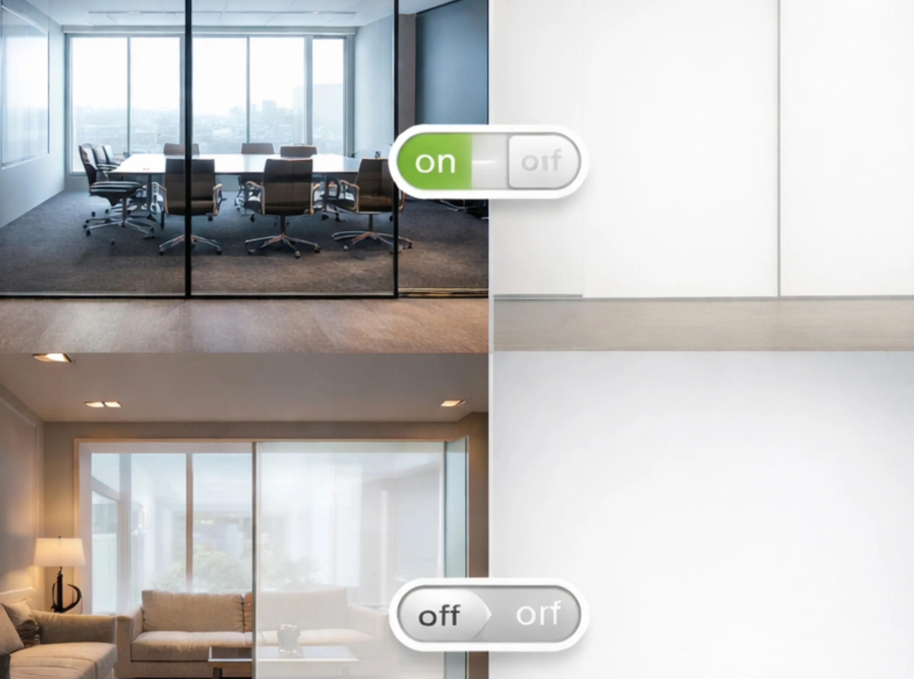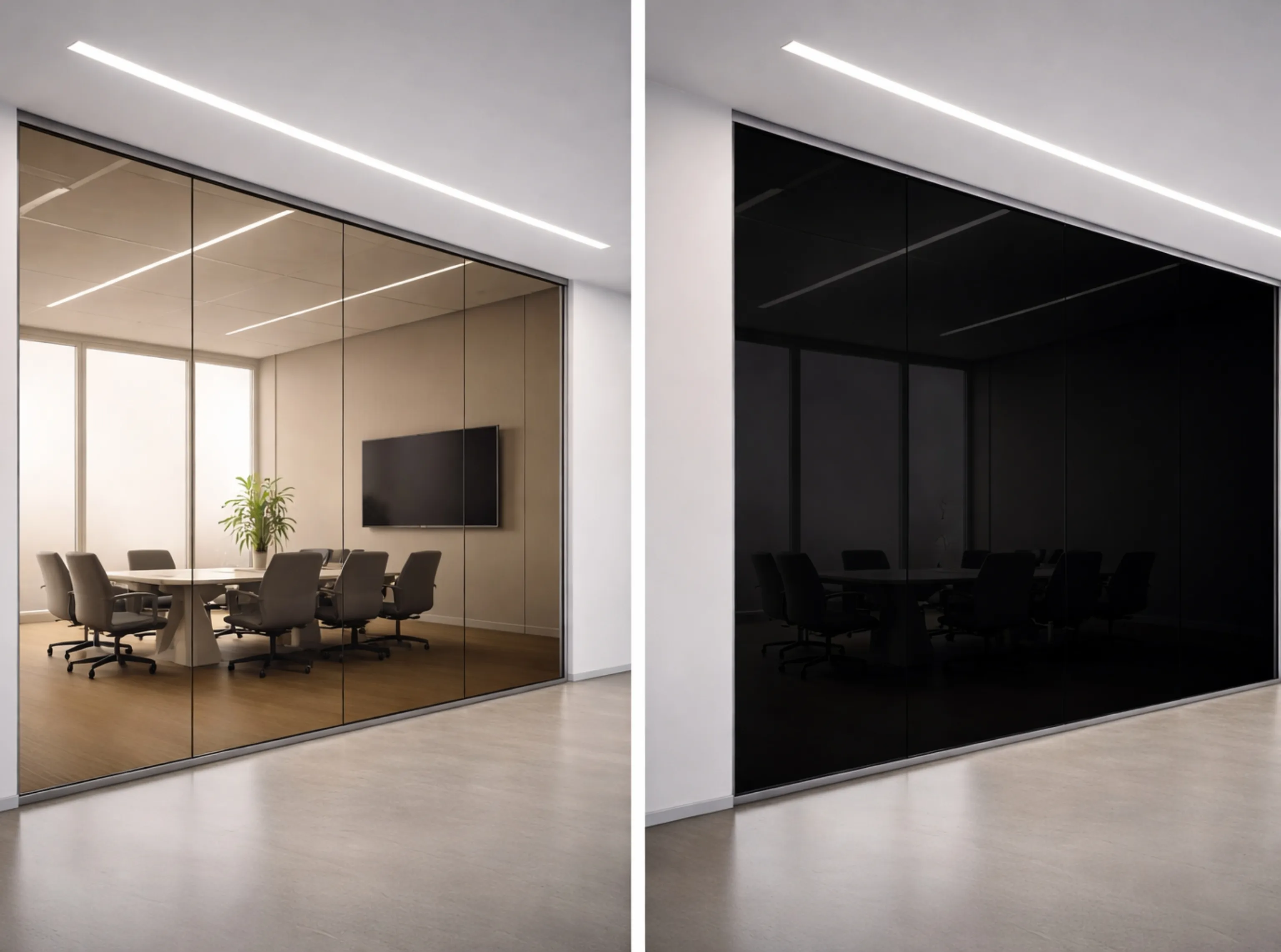 Advanced switchable glass enables instant transparency control for modern functional spaces.
